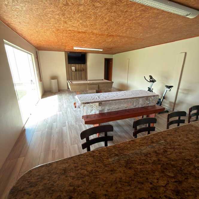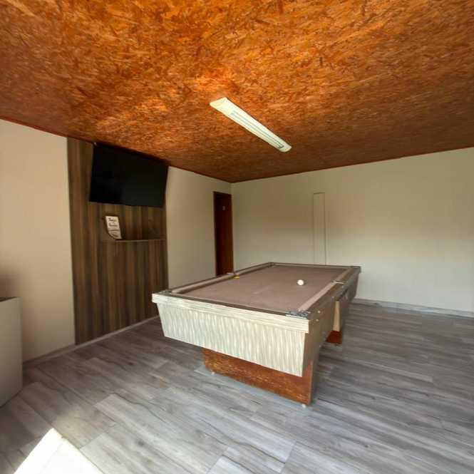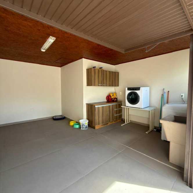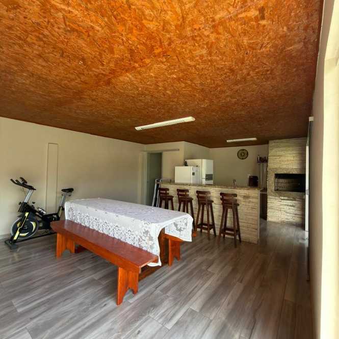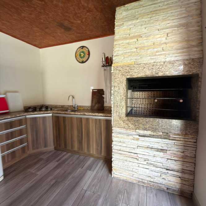 Churrasqueira com 1 banheiro, lavanderia, dispensa, varanda.