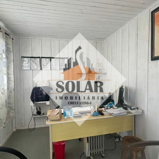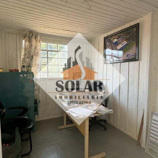 Terreno de esquina com um escritório de madeira.