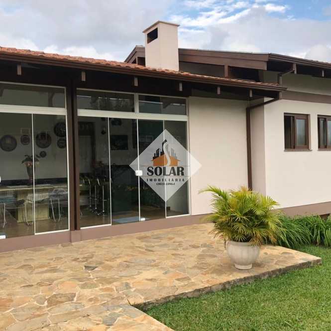 Dispondo de uma suíte com closet e hidro, três quartos, um banheiro social, escritório, sala de estar com lareira, sala de jantar, lavabo, jardim de inverno, cozinha, copa, lavanderia, dependência com banheiro, churrasqueira, garagem e piscina. Todos os ambientes da casa bem amplos e amplo jardim de inverno!