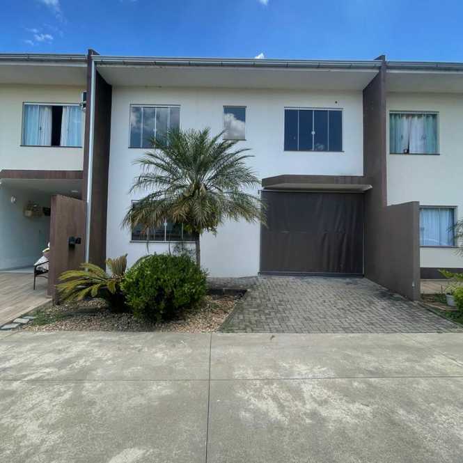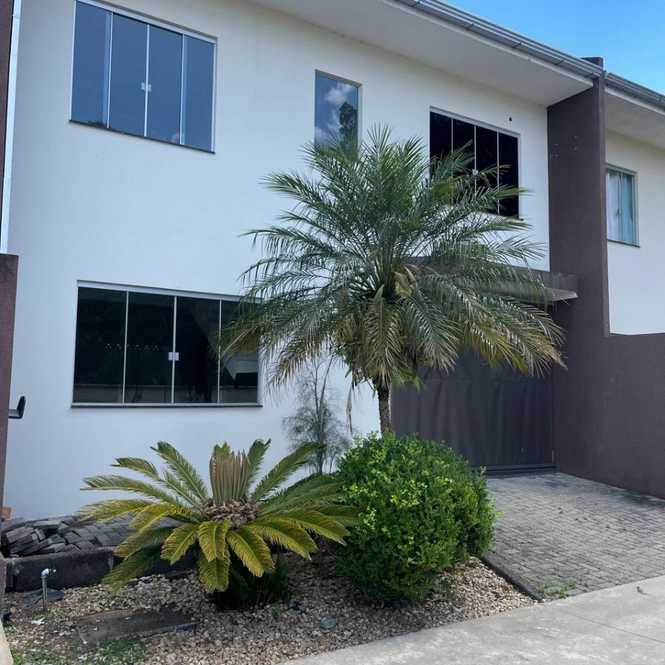 Sobrado com 110 m² dispondo de cozinha e sala de estar integrado, lavabo, área de serviço, garagem com churrasqueira, uma suíte, uma demi-suíte. Localizado à Rua Emílio Scholze, n° 1015, bairro sossego, em Canoinhas.
